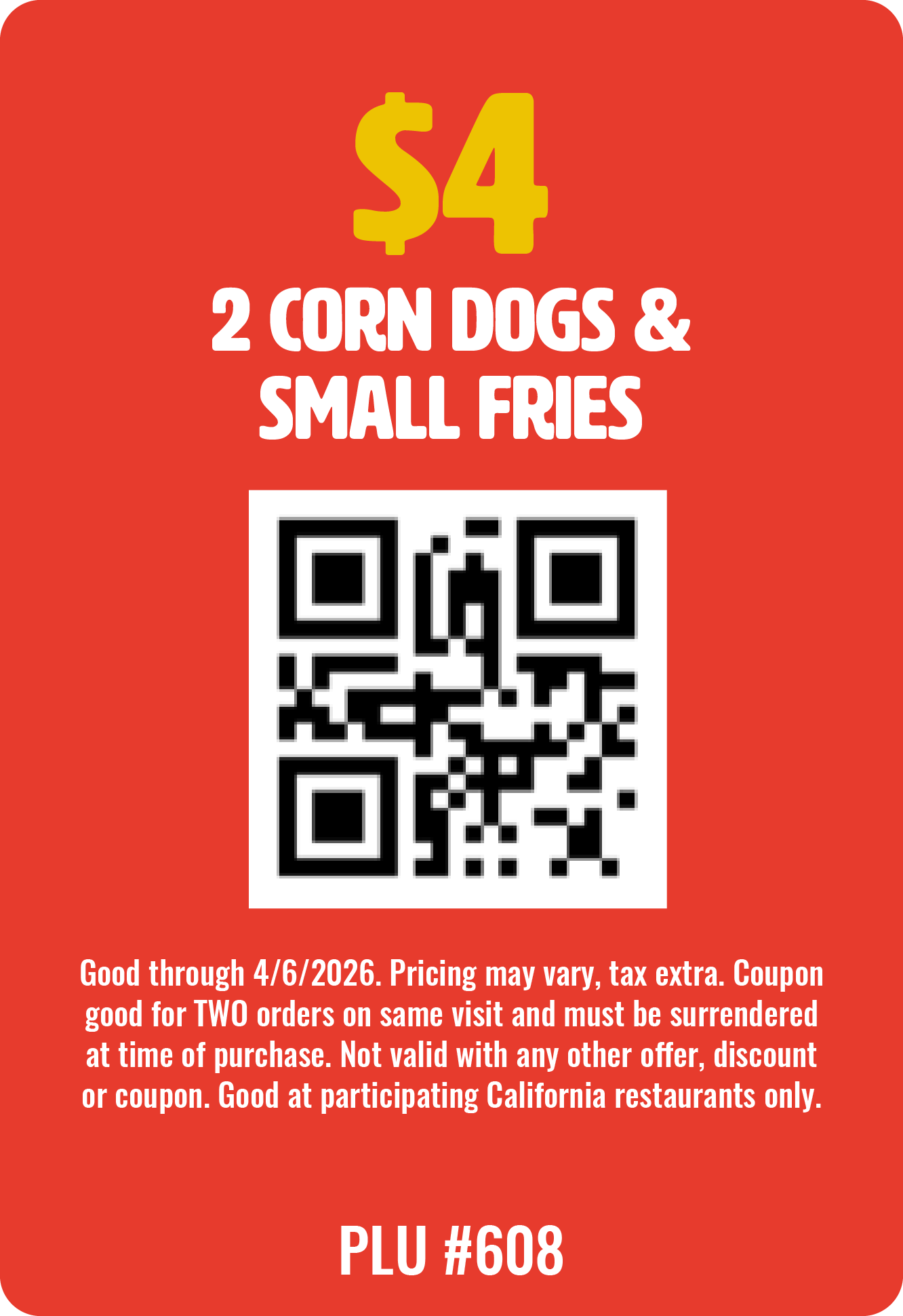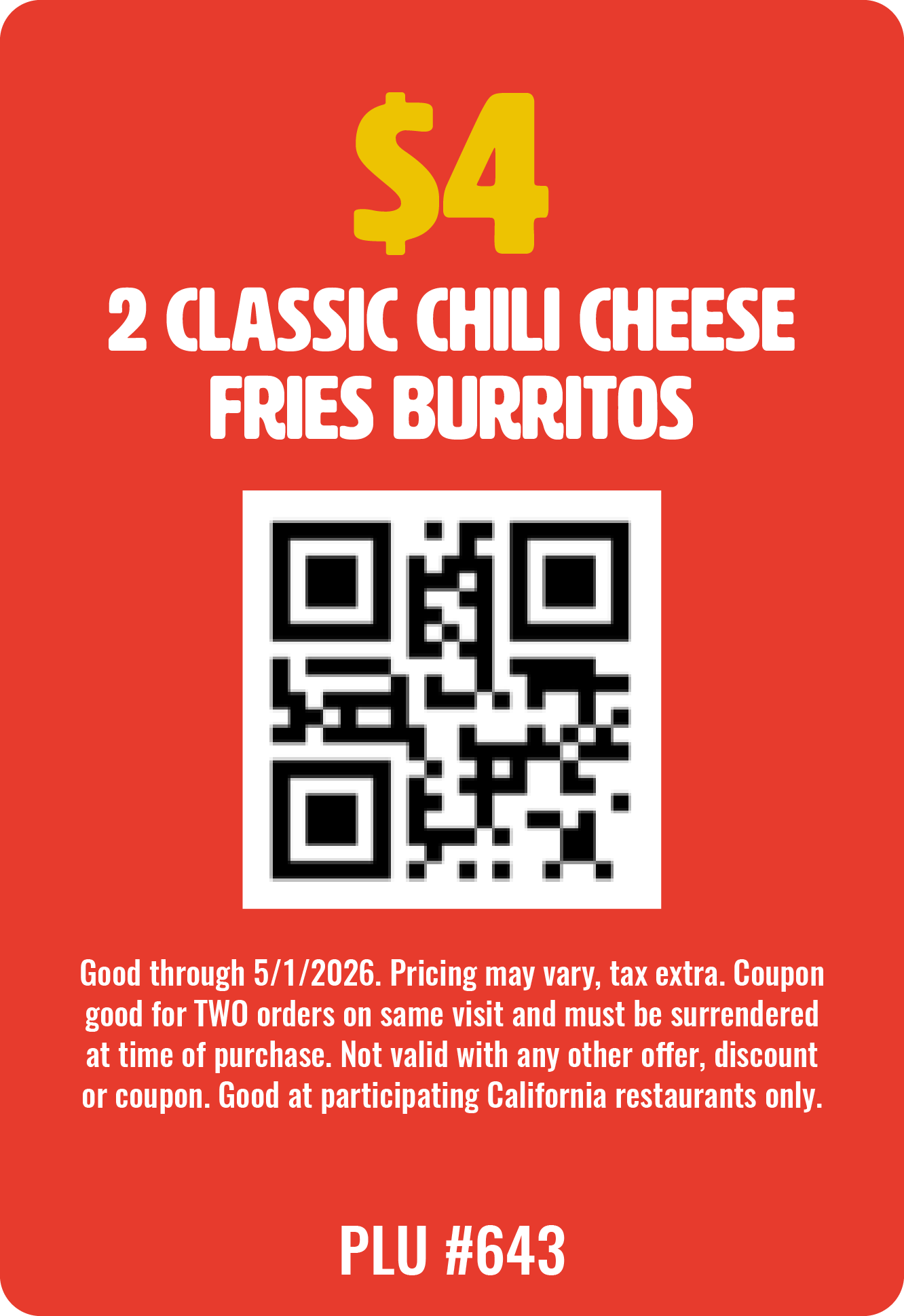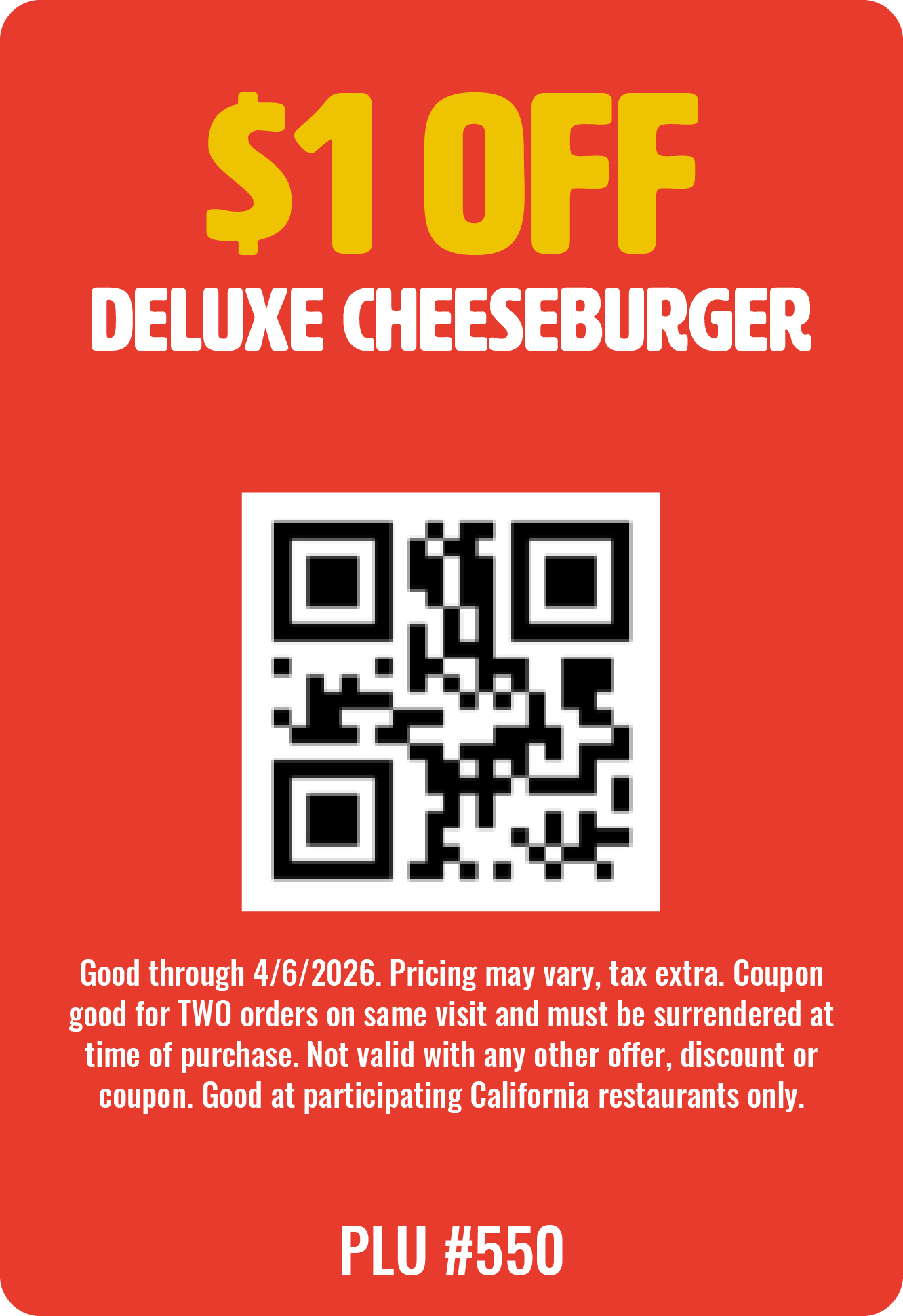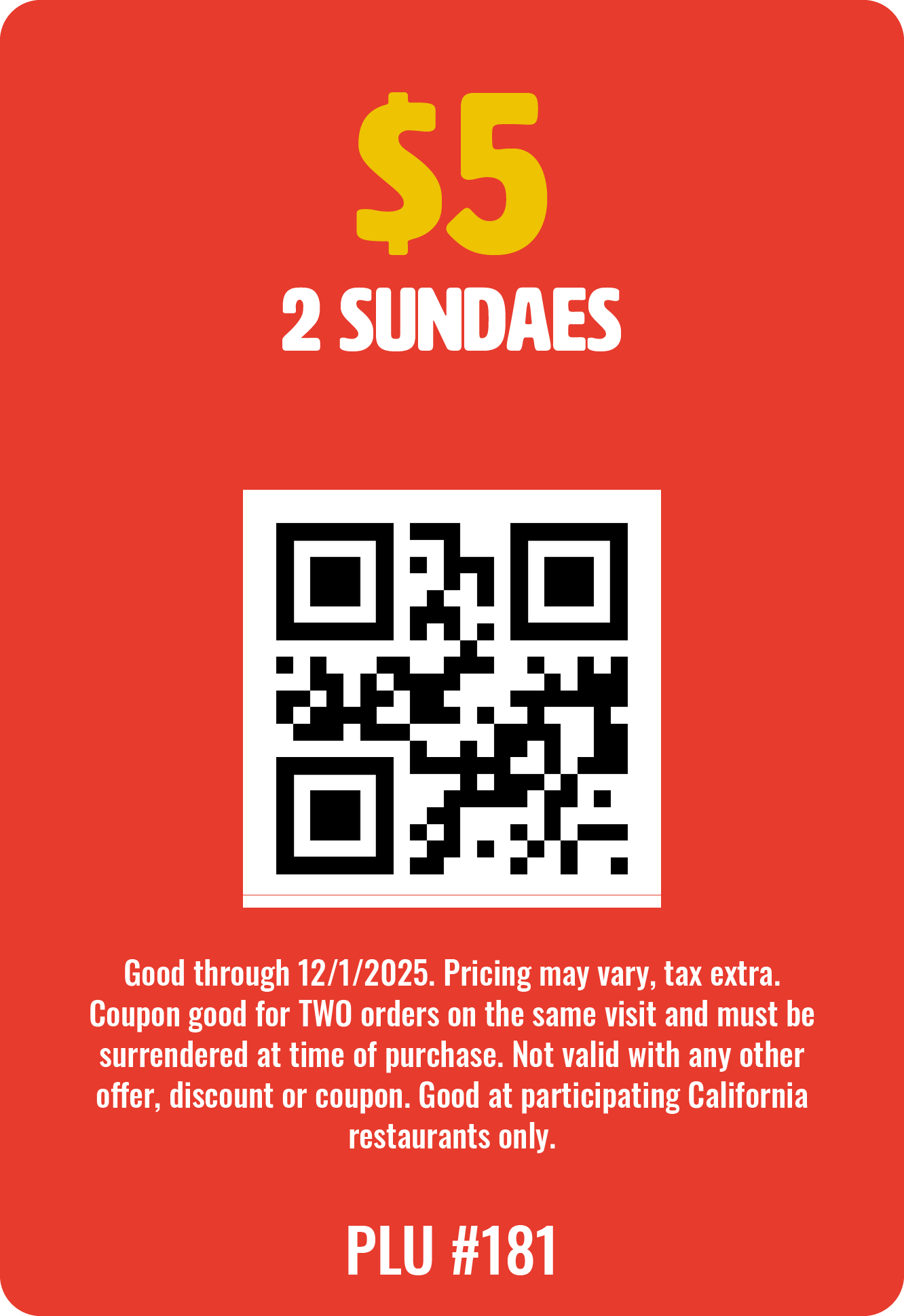 Show one of these QR codes when ordering at any of our participating locations to redeem these offers.