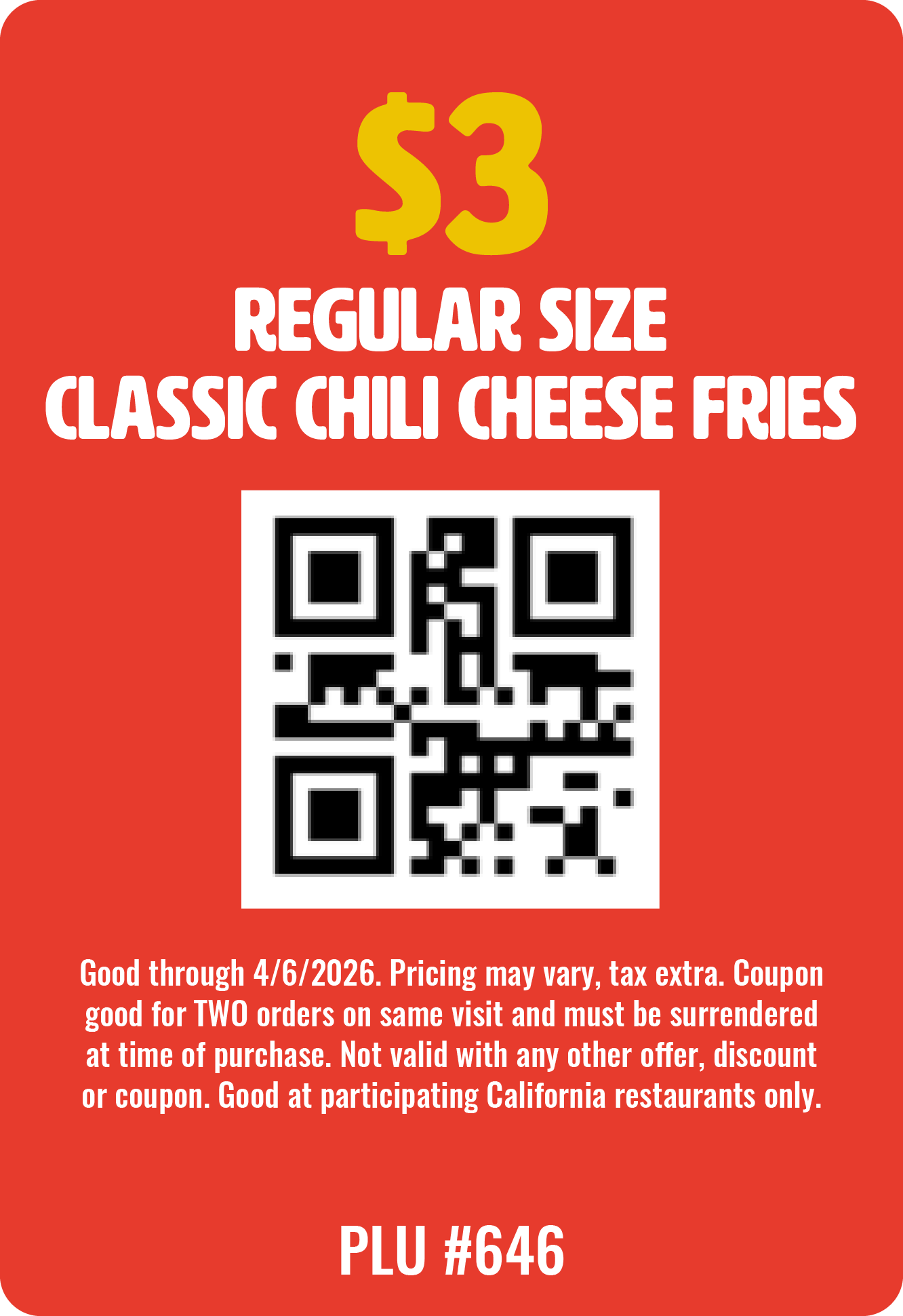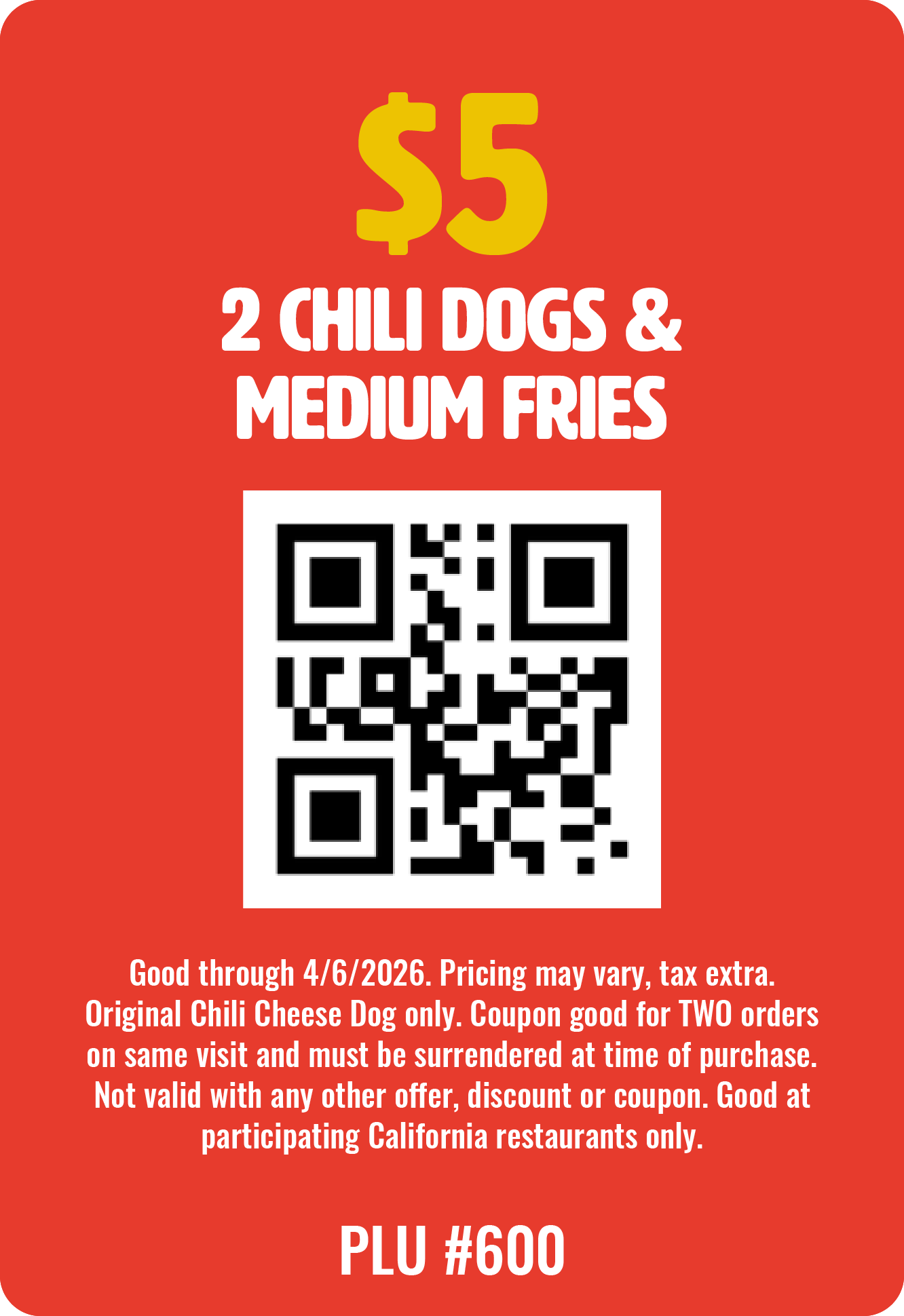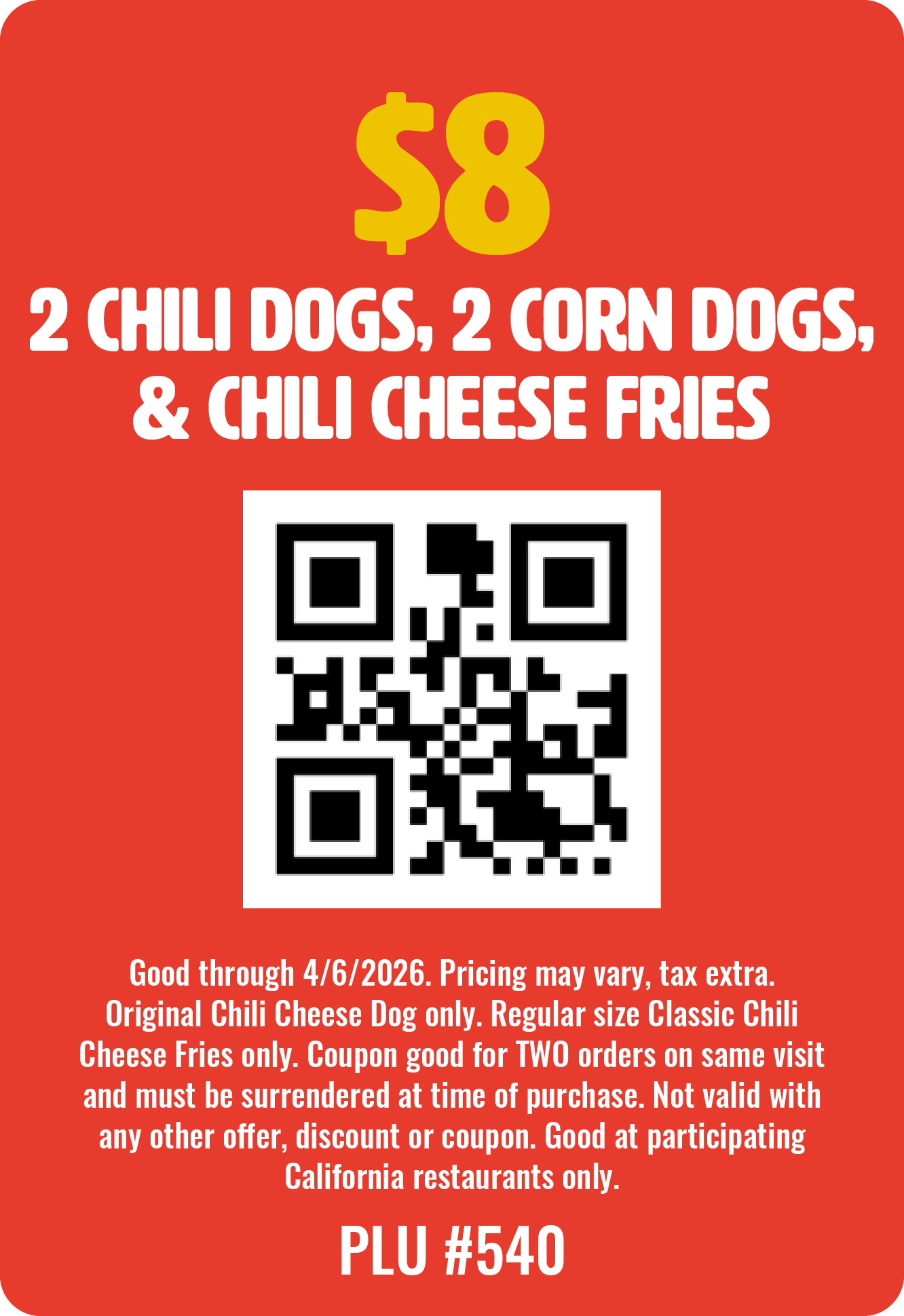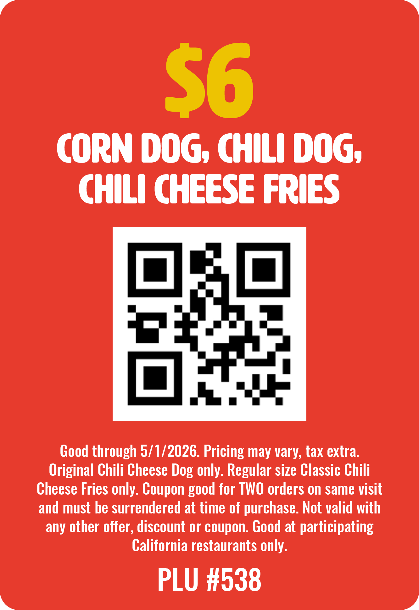 Show one of these QR codes when ordering at any of our participating locations to redeem these offers.